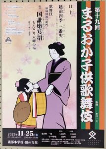 まるおか子供歌舞伎が11月25日(土)に磯部小学校・旧体育館で行われ、お家元と見に行きました。