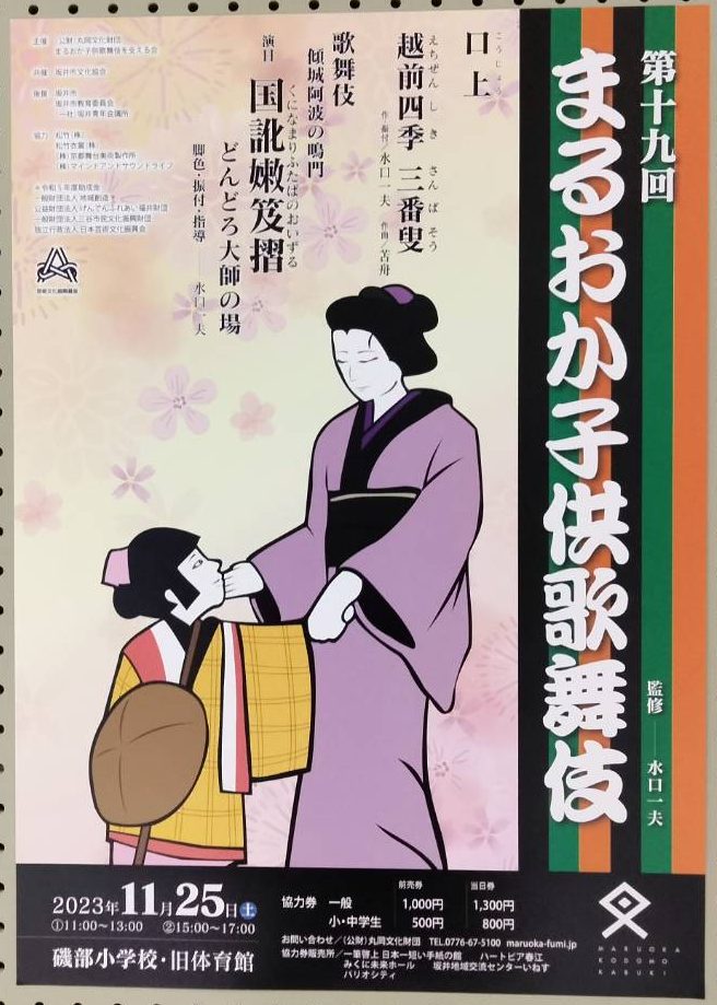 越前四季 三番叟はまるおか子供歌舞伎の為に創られたものだそうで、四季折々に越前の名所や旧跡が詠み込まれた歌詞になっておりました。