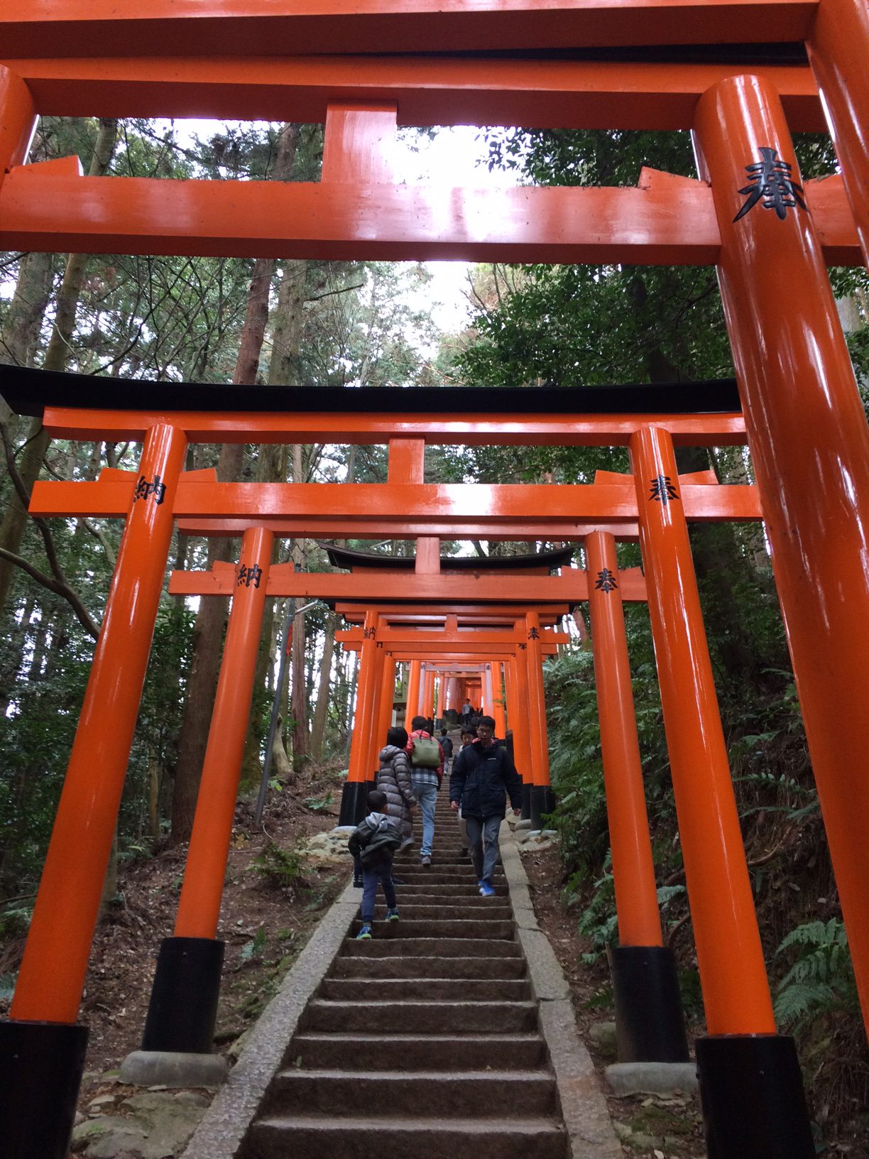 稲荷山の頂上へ向けてたくさんの鳥居をくぐり、1時間ほどかけて登りました。