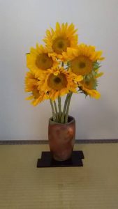 もらった向日葵は夏のシンボルの代表的な花ですが、自宅の床の間に飾ったら外は雪がちらつく寒さなのに、太陽に向かって花開いた向日葵は素敵でした。
