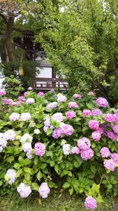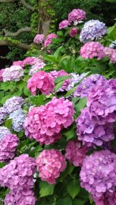 日本は酸性土壌なので赤系は少ないそうですが智積院の紫陽花庭園は赤系の紫陽花が見事に咲き誇っており、青色、ピンク色、白色、紫色の紫陽花と美しく入り混じり素晴らしい景観を演出していました。
