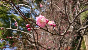 そんな中でも春が近づいてきてるのか、紅梅が咲き始めているのを見つけました。