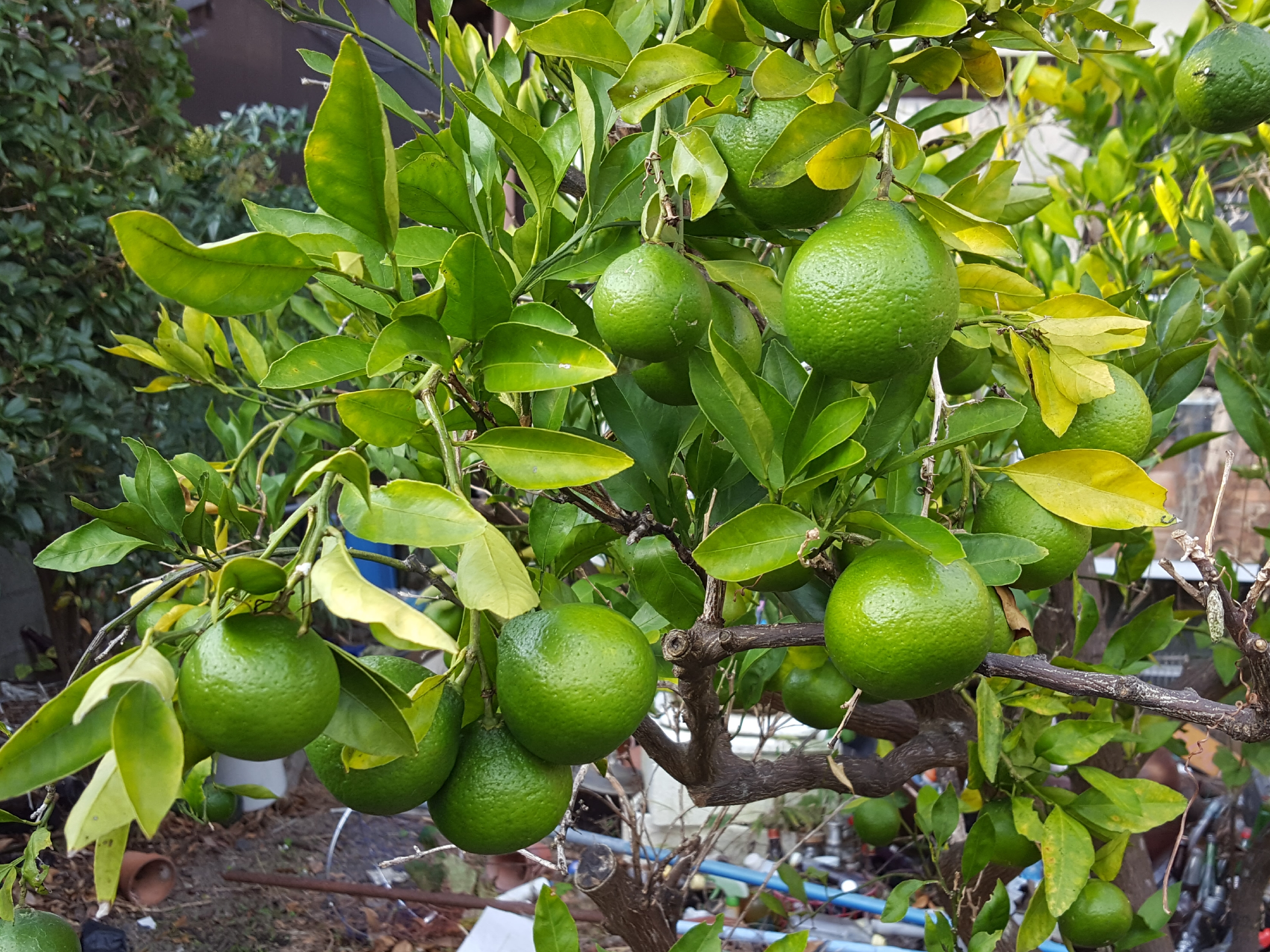 先日、祖母の家に行ったときに庭を見ていたら、みかんが大きくなってきていました。