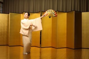 京鹿子娘道成寺は能の道成寺を基にしたものですので、その名残として中啓を使って踊る部分が残されています。