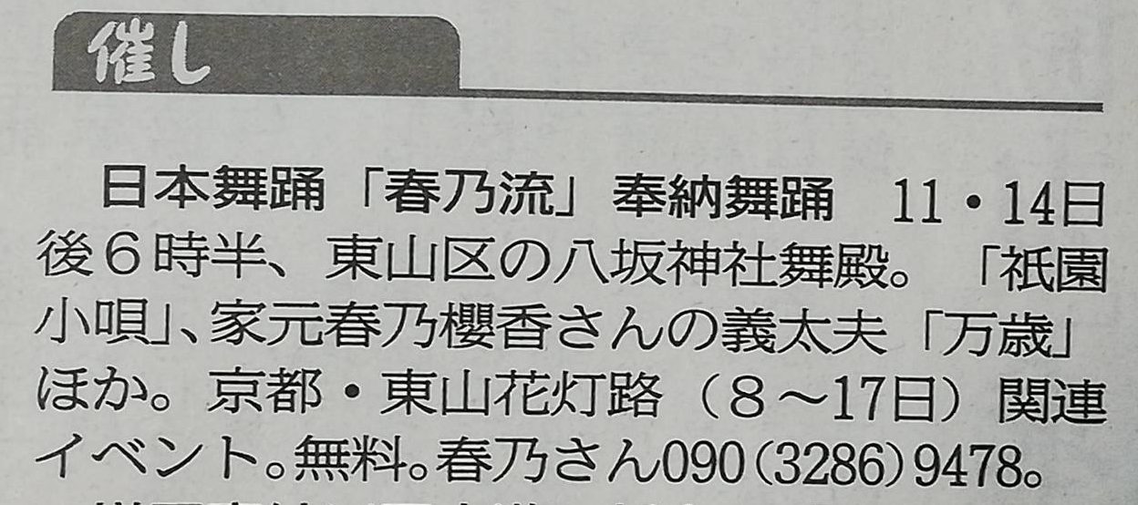 【お知らせ】京都新聞朝刊に「八坂神社 奉納舞踊」が掲載されました