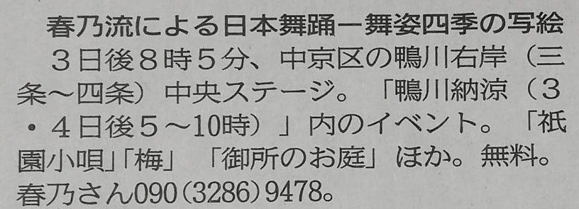 【お知らせ】京都新聞朝刊に「鴨川納涼」が掲載されました