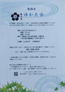【お知らせ】春乃流勉強会 ゆかた会 2023/05/16 2023年 春乃流勉強会 ゆかた会 春乃流門下生一同が、日頃の稽古の成果を披露いたします。 それぞれの演目の見所や解説もありますので、より一層お楽しみいただけるのではないかと思います。 日時:2023年7月8日(土) 14時開演 場所:京都府立文化芸術会館 3階和室 ご来場の際はマスクの着用・手指の消毒等、感染症予防にご協力をお願いいたします。 FacebookTwitter