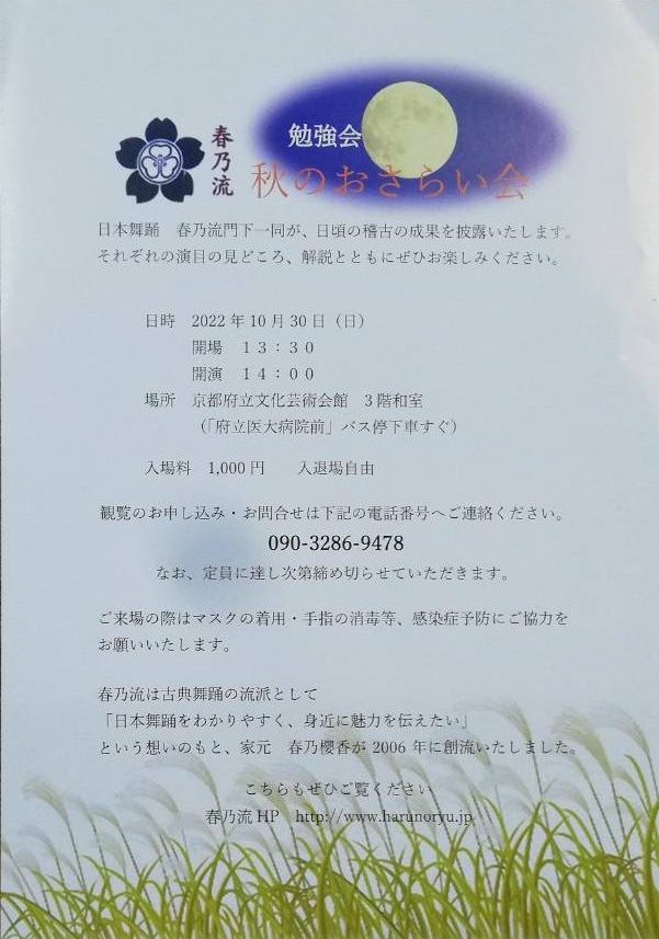 【お知らせ】春乃流 勉強会 秋のおさらい会
