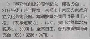 【お知らせ】産経新聞朝刊に春乃流創流20周年記念「櫻香の会」が掲載されました