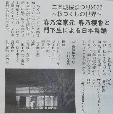 【お知らせ】MK新聞4月号に「二条城桜まつり」が掲載されました