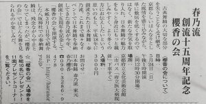 春乃流創流15周年記念「櫻香の会」が掲載されました。