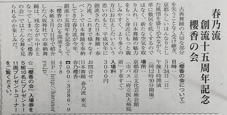 【お知らせ】MK新聞4月号に春乃流創流15周年記念「櫻香の会」が掲載されました