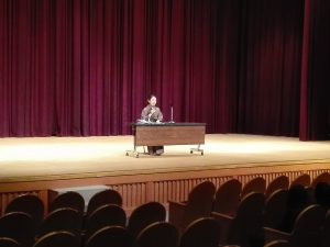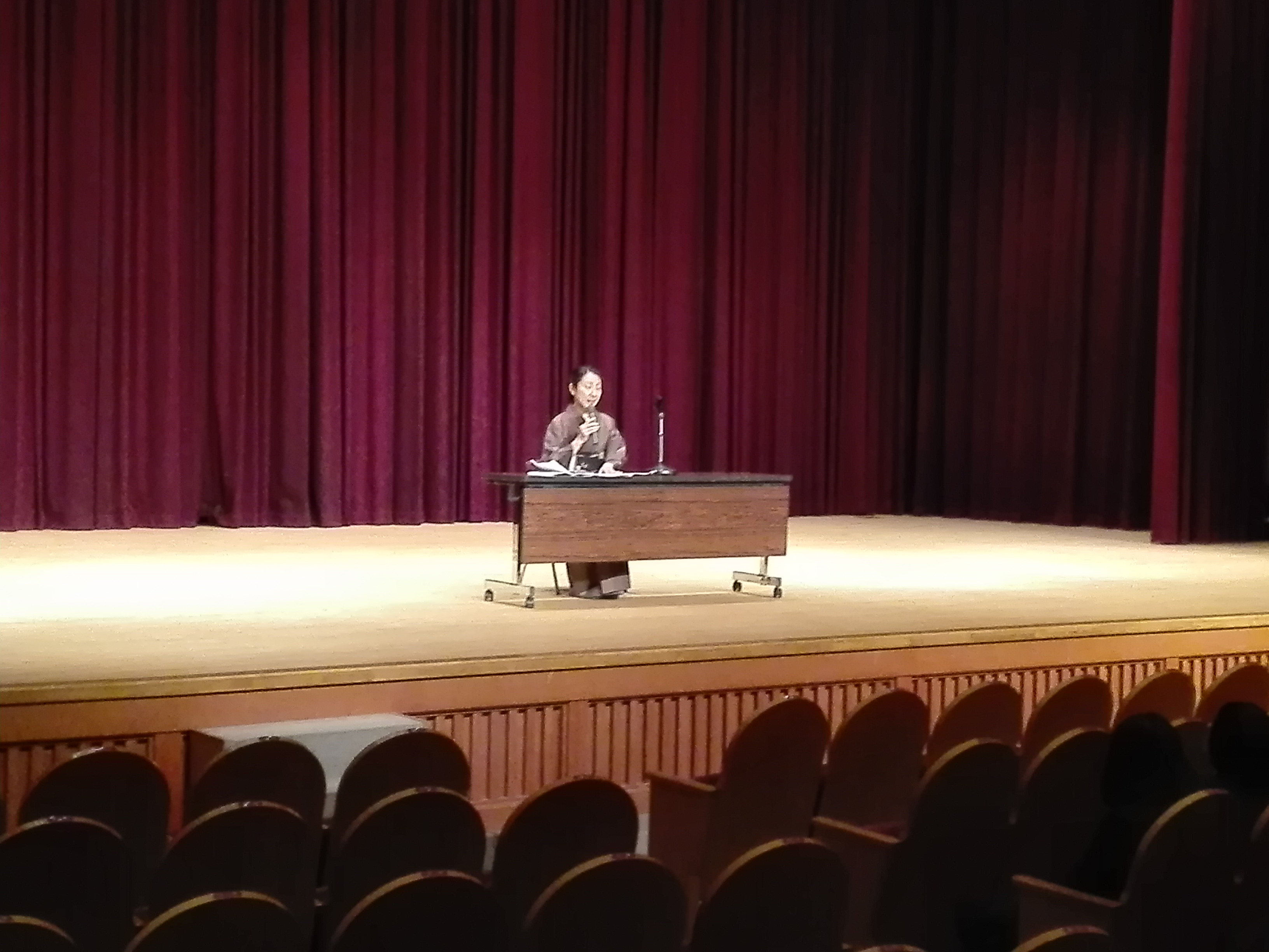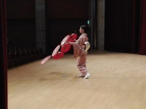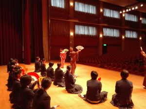 授業の前半は家元から日本舞踊についての歴史と説明、体験する演目の歌詞や小道具の