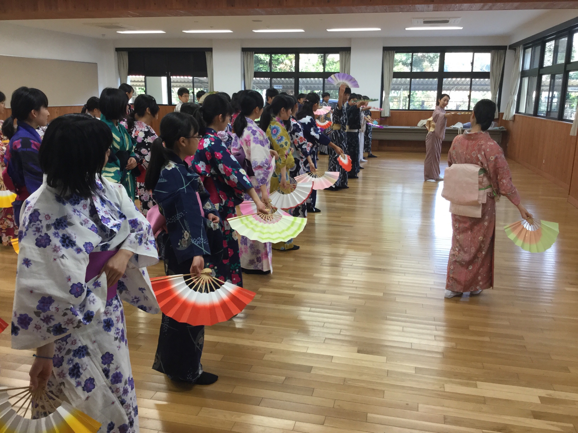 その後、浴衣に着替えて実際に日本舞踊を体験していきました。