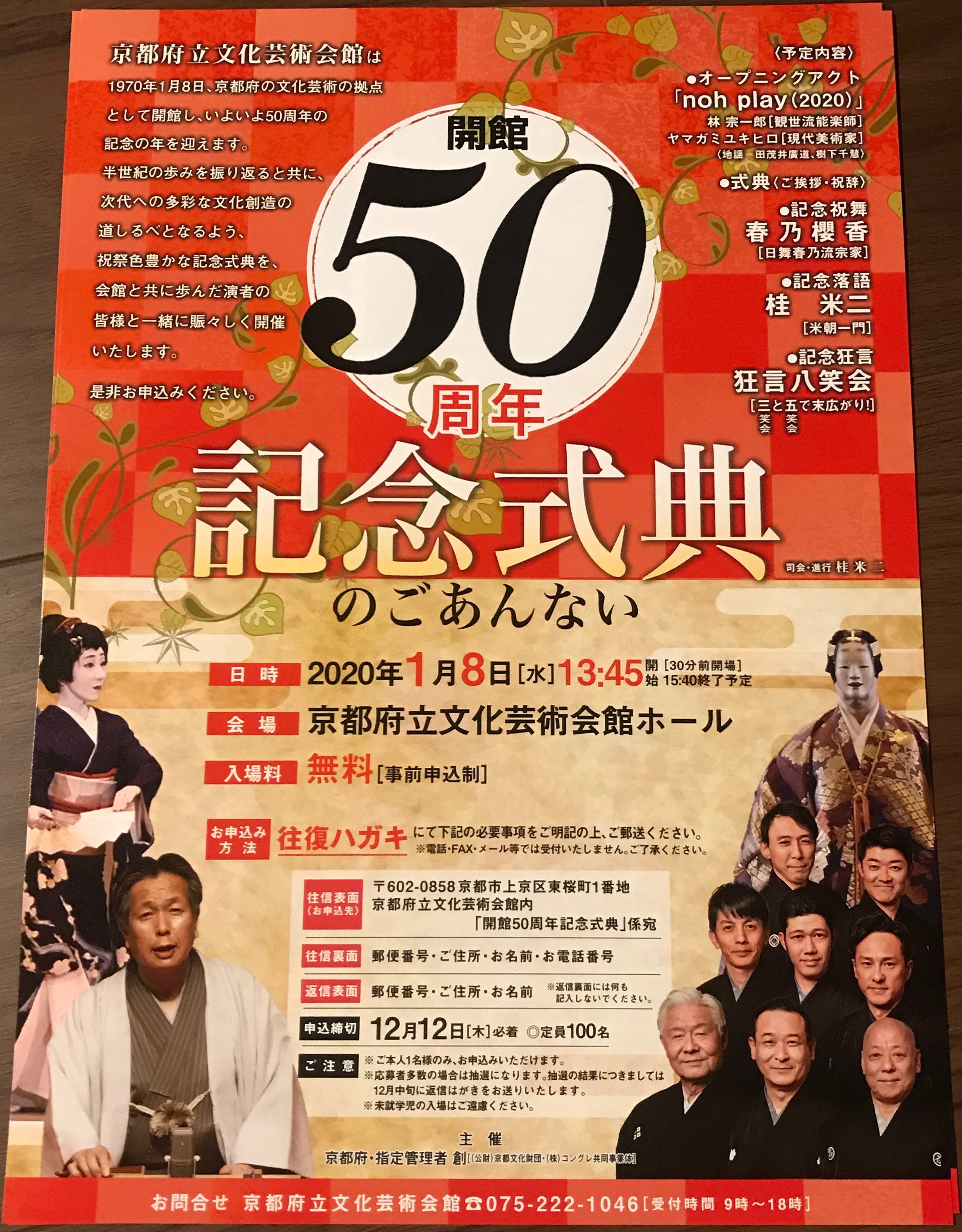 【終了いたしました】京都府立文化芸術会館 開館50周年記念式典 2020/01/09 1月8日(水)に京都府立文化芸術会館にて、開館50周年「祝祭の日」記念式典が催されました。 春乃流家元 春乃櫻香も記念祝舞として日本舞踊を披露させていただきました。 会場はたくさんのお客様で満席でした。 記念式典が盛況のなか、無事終わりましたこと心よりお慶び申し上げます。 FacebookTwitter
