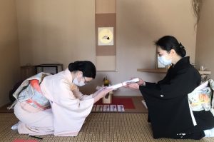名取が集まり、1人づつお家元に今年1年の感謝と次の年に向けてのご挨拶をさせていただきました。