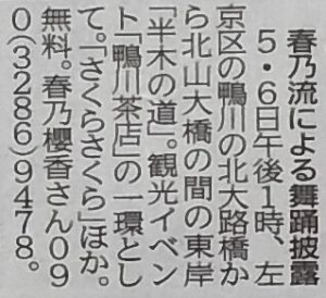 【お知らせ】京都新聞朝刊に「鴨川茶店」が掲載されました 2025/04/02 4月1日(火曜日)の京都新聞朝刊 23面のまちかど イベントにて 「鴨川茶店」が掲載されました。 皆様のお越しをお待ちしております。 FacebookTwitter