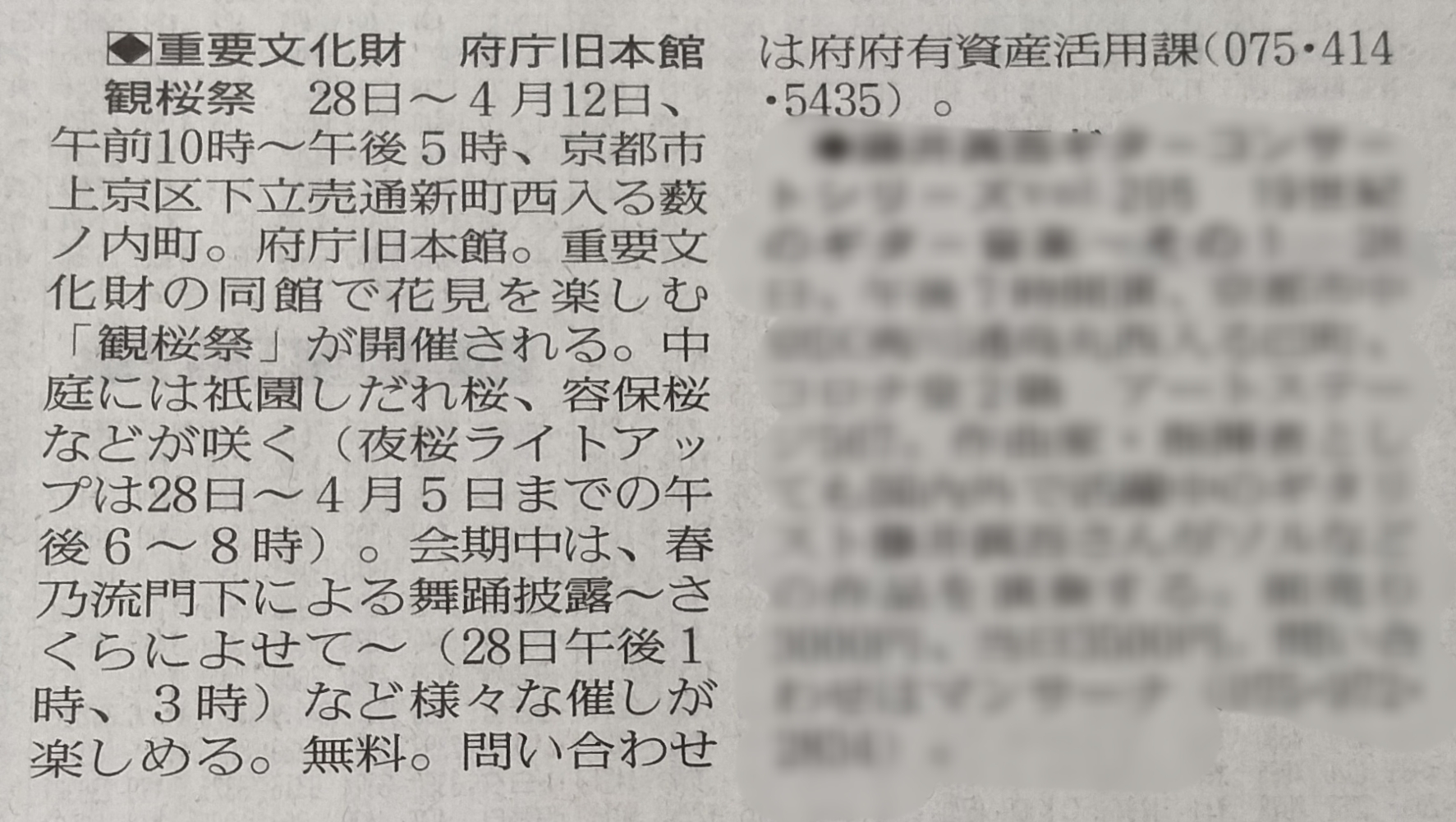 【お知らせ】読売新聞朝刊に「観桜祭 春乃流による日本舞踊」が掲載されました 2026/03/21 3月20日(金曜日)の読売新聞朝刊 Event & Stage 京都に 「観桜祭 春乃流による日本舞踊」が掲載されました。 出演する門下一同、稽古に励んでおります。 ぜひ皆様お越しください。 FacebookTwitter