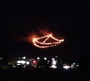大文字は東山の如意ヶ嶽、妙法はそれぞれ松ヶ崎の西山(万灯籠山)と東山(大黒天山)に、船形は西賀茂の船山、左大文字は大北山の大文字山、鳥居形は嵯峨鳥居本の曼荼羅山にそれぞれ火が灯されます。
